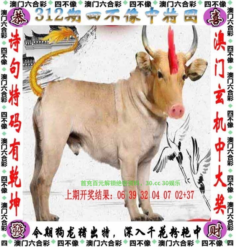 | 300期 | 鸡牛龙狗 | 开:虎40 |